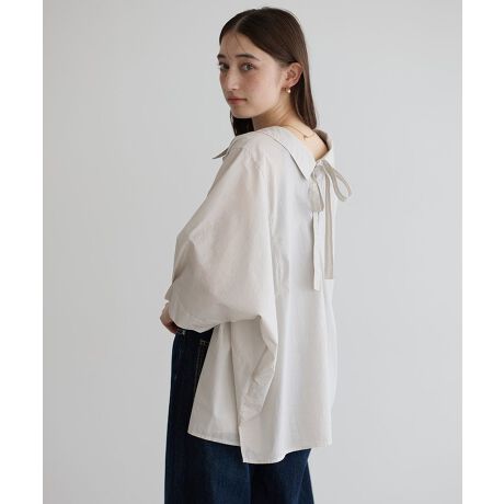 微光沢のペーパータッチ素材で仕立てたナチュラルな印象のシャツ。