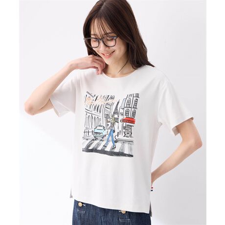 美しいパリの街並みが描かれたプリントTシャツ