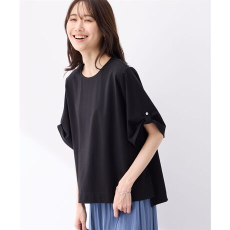 スリーブに施されたタブを留めることで、抜け感のあるスタイリングを楽しむことができます。