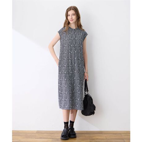 単色の小花柄で大人顔に仕上げたノースリーブワンピース
