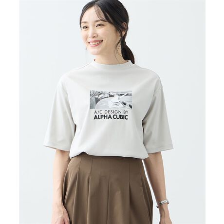 【アルコラージュ】モックネックフォトTシャツ【接触冷感・UVカット】