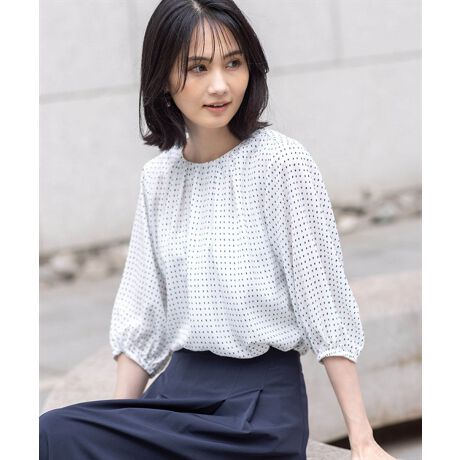 丸みのあるふんわりとしたシルエットがやわらかい印象を与えるブラウス。
