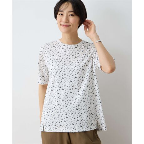 小さめの総柄プリントでスタイリングにも取り入れやすいデザイン。