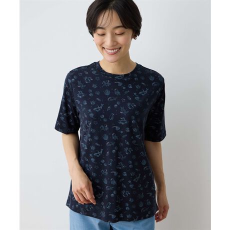 ヒトデやカメなどの海モチーフをあしらった爽やかなTシャツです。