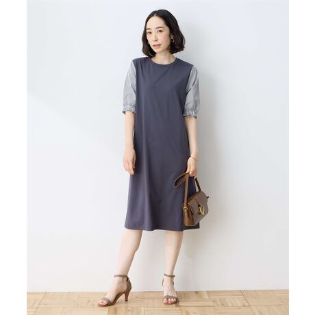 ストライプ柄の袖切替が爽やかなアクセントに映えるワンピース
