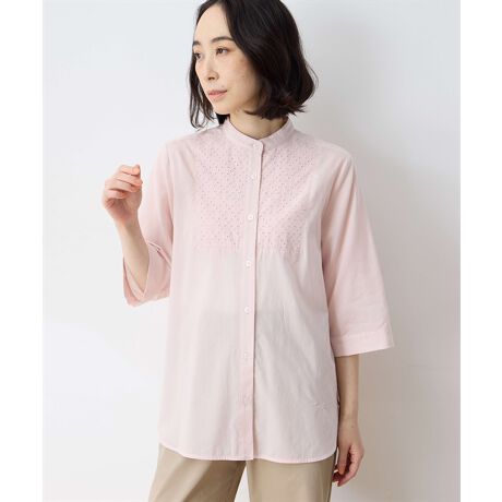 お得に購入できました。肌触りの良い綿で、レースの切り替えがあり春夏向きのブラウスですが、上着着用で