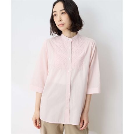 アイレットの透かし模様と小花のような刺しゅうのディテールが可愛らしいデザイン。