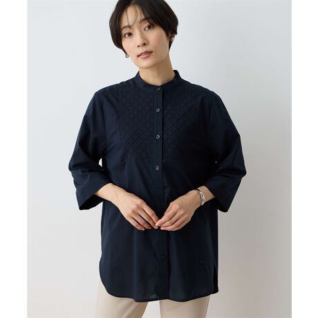 お得に購入できました。肌触りの良い綿で、レースの切り替えがあり春夏向きのブラウスですが、上着着用で