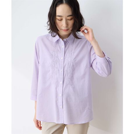 フロントに施された繊細な刺しゅうが目を引くブラウス