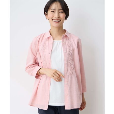 フロントに施された繊細な刺しゅうが目を引くブラウス