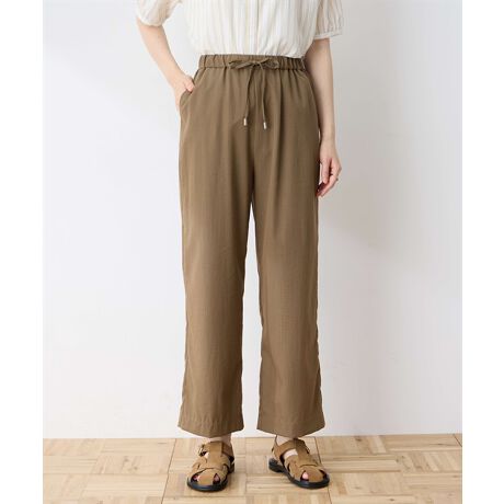 ウエストは安心感のあるゴム入りで穿きやすく、ドロスト付きでサイズ調整が可能。