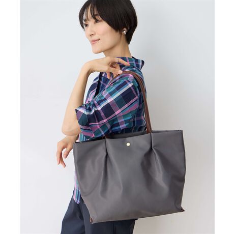 上品なナイロン素材に合皮を組み合わせたエレガントなデザイン。