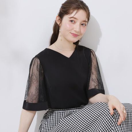 ・saori(153)程よい透け感を楽しめるお袖のレース使いがフェミニンな一枚◎洗濯機で洗えるのでお手入れも簡単です!ボトムを選ばず着用でき、着映えすること間違いなし◎
