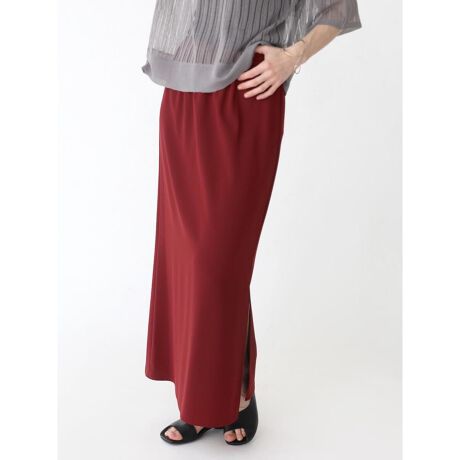 心地よい着用感ながら、キレイ見えも叶えるIラインロングスカート。イージーな履き心地のウエストゴムを使用し、ベーシックなデザインながらもサイドに大きく入ったスリットが抜け感をプラスします。汎用性の高いアイテムなため、セットアップでの着用はもちろん、カジュアルにも綺麗めにも着こなしていただけます。