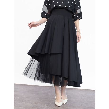 内側にチュールをレイヤードしたボリュームが目を引くフレアスカート。