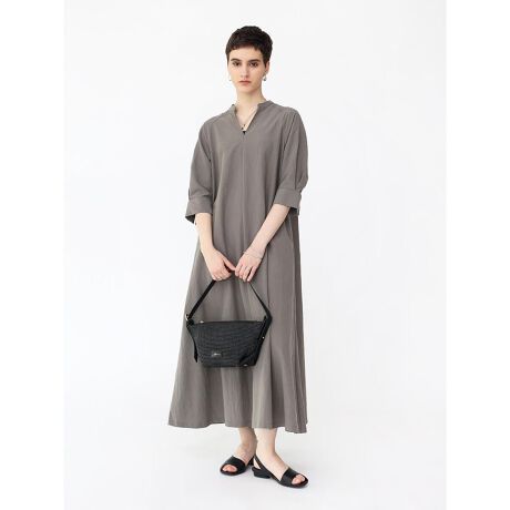 細部のディティールと身体を優しく包み込むようなシルエットが絶妙なバランスのワンピース。胸元のVネックや袖周りにダーツやスリットを落とし込むことで、オーバーなサイジングながらもすっきりと抜け感を演出します。分量たっぷりのフレアシルエットなため、歩くたびになびくドレープが涼し気な印象をプラスし、1着でサマになる夏のおでかけスタイルにおすすめの逸品です。