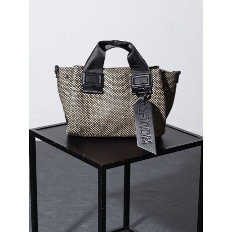 夏らしい素材を使用した本体デザインに、異素材パーツを組み合わせた2wayトートバッグ。