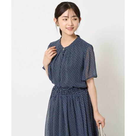 【小さいサイズ】スクエアドット柄フレアスリーブブラウス/洗える/セットアップ対応