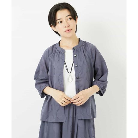 コットン100%の涼やかで可憐なドット柄ジャガード前開きブラウス