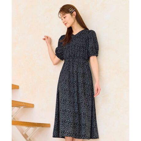 パフスリーブがフェミニンさをプラスしつつ、ウエストの切り替えで自然なスタイルアップ効果も◎