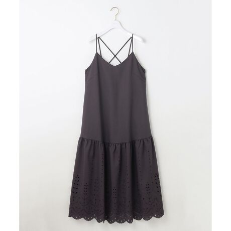・すっきりとした大人のリラックスムード漂うキャミワンピース・ストレートフレアのシルエットで身体のラインをカバー・マキシ丈のシンプルなティアードデザインで甘さ控えめ