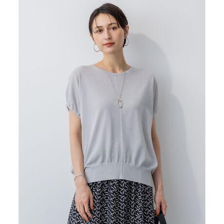 袖口のふんわりとしたシルエットとゆったりとした身幅が、大人の余裕を感じさせるプルオーバーニット。気になる体のラインをさり気なくカバーしながら、きれいめスカートと合わせた上品なスタイリングや、カジュアルなパンツと合わせた抜け感のある着こなしまで、幅広い夏のスタイルに活躍します。一枚で着映えするのはもちろん、ジャケットや羽織りのインナーとしても、華やかさをプラスしてくれるアイテムです。カラーは、ゴージャスな雰囲気のゴールド(#090)、抜け感のあるライトグレー(#003)、明るい雰囲気のシルバー(#091)の3色展開。