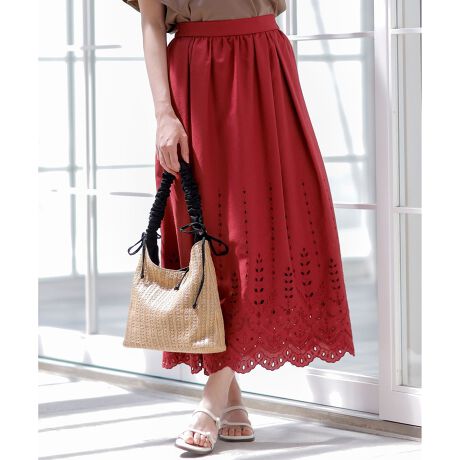 【洗える】カットワークエンブロイダリー スカート