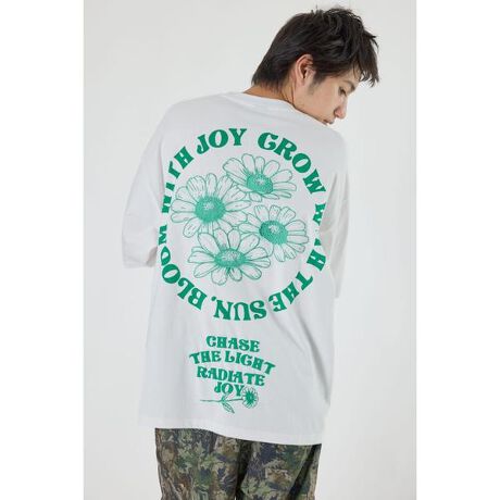 ■ポイント背中に大胆にデザインされたフラワーグラフィックが目を引く半袖Tシャツ。■ディティール刺繍と発泡プリントといった異なる手法で立体感を出していて、これ一枚で主役級になれるアイテム。■スタイリングジョガーパンツやストレートパンツなどのベーシックな合わせはもちろん、ルーズなデニムパンツやワイドカーゴパンツなどと合わせたストリートスタイルもおすすめ。ユニセックスでお揃いのコーディネートも楽しめます。■生地OE糸を使用、繊維の間に空間があり、適度な空気を含んでいるためシャリ感(ザラ感)があるのが特徴の生地です。プリントの風合いやカラー及び位置には個体差があります。プリントを重ねるとくっついたり色移りの可能性がありますので注意してください。着用・洗濯によリ白化する場合があります。■透け感:なし■光沢感:なし■伸縮性:なし■裏 地:なし[注意事項]※画像の商品はサンプルです。実際の商品と仕様、加工が若干異なる場合があります。※画像の商品は光の照射や角度、お使いのモニター環境により、実物と色味が異なる場合がございます。※着用、お取り扱いの際は、アテンションタグをご確認ください。