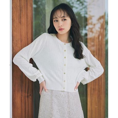 【ベーシックなシルエットに凹凸のあるブロックチェックが周りと差をつける、リンクス編みニットカーディガン】【Point】・羽織りとしてもトップスとしても着回ししやすい、ベーシックなシルエットのクルーネックカーディガン。・凹凸のあるブロックチェック柄がアクセントに。いつもと違う着こなしを楽しめます。・フロントは金ボタンで女性らしい上品さを演出します。ケア方法:ドライクリーニング透け感:なし裏地:なし伸縮性:あり光沢感:なし生地の厚さ:中肉