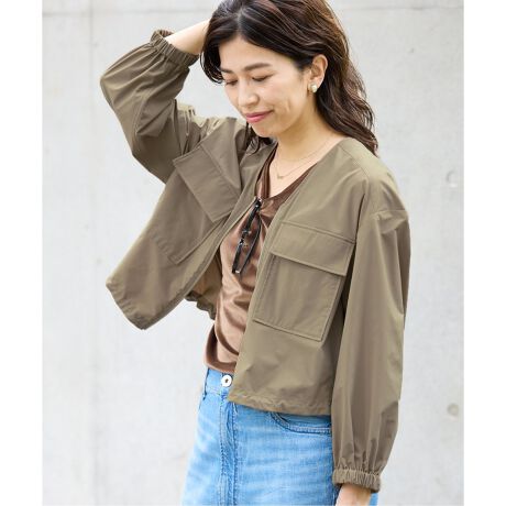 手洗い可能なポリエステル素材で、気軽に使えるノーカラーのライトアウター。