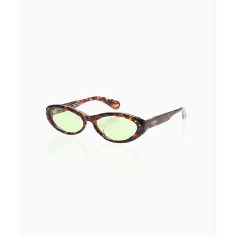 楕円形で丸みを帯びたフレーム。ダブルメタルハートのディテールと、アームテンプルにBONNIEのロゴが施されています。透明なブルーライトカットレンズを備えたべっ甲柄のフレーム。