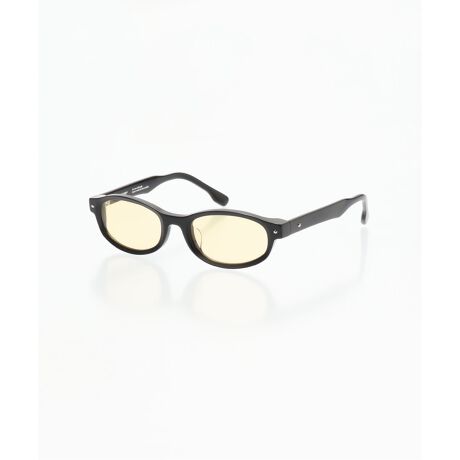 楕円形のスリムなシルエットのアセテートフレームに、細いストレートテンプルと丸いメタルのディテールを組み合わせました。