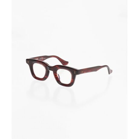 厚みのある丸みを帯びたフレーム。ストレートな眉、カーブしたノーズブリッジ、長めのノーズパッドが特徴です。テンプルにはステンレススチールの芯線を使用し、フレームとテンプルには花をモチーフにしたメタルディテールを施しています。