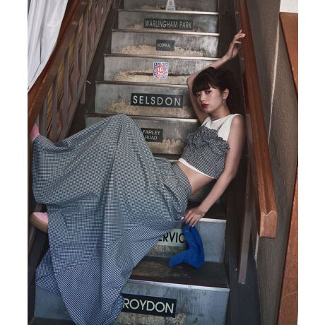 et0230007977(チェック柄ギャザーマキシスカート)とセットアップが可能。