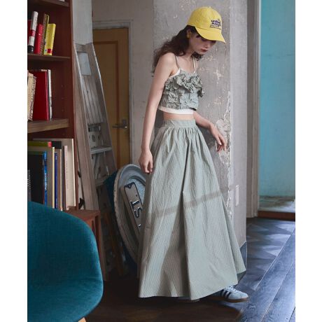 チェック柄ギャザーマキシスカート