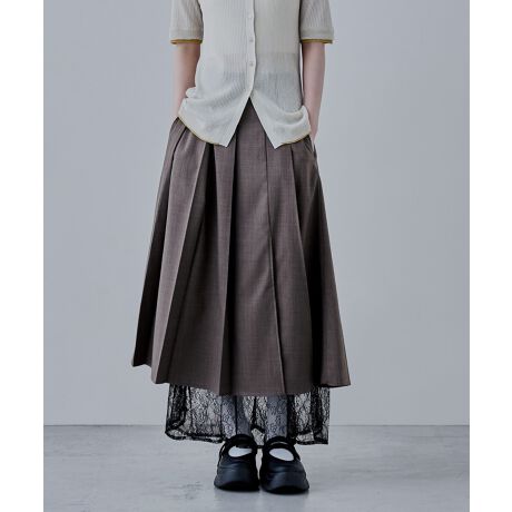 etoll. エトル 知的な印象のプリーツスカートに、甘いレースをレイヤード。