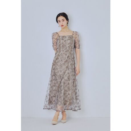 配色のフラワーパターンが美しいオケージョンドレス。
