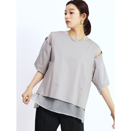 オーガンジーとコットンカットソーをレイヤードしたリバーシブルカットソー。