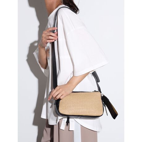 シーズンムード高まる雑材とエコレザーの異素材ショルダーバッグ。