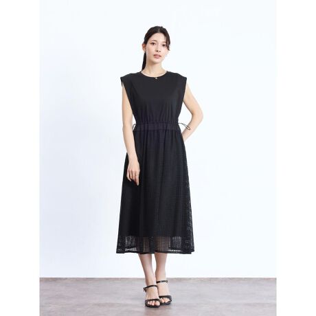1枚でコーデが完成するカットソー×メッシュのドッキングワンピース。