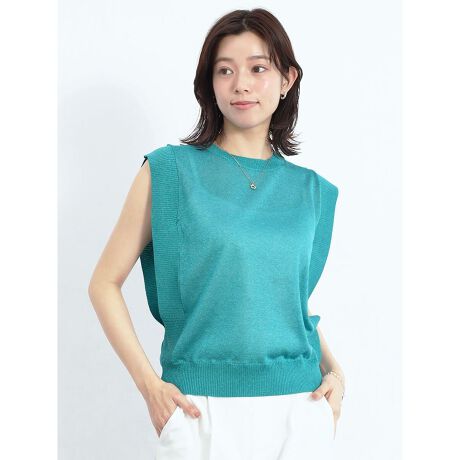 上品なラメの光沢感が魅力のノースリーブサマーニット。