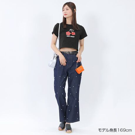 短めの丈感で、ヘルシーな肌見せコーデを楽しめます。ハイウエストのボトムスとの組み合わせがおすすめ。キュート&POPな雰囲気を演出します。