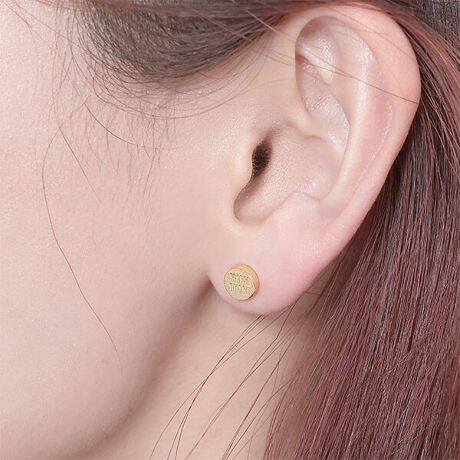 メタルにロゴを刻印したピアス。