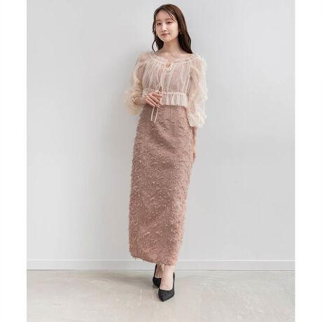フリルがポイントのチュールブラウスと、ストレートラインのキャミワンピースがセットになったマルチウェイアイテム。