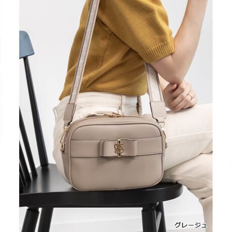 上品なフロントのダブルリボンが印象的なショルダーバッグ。