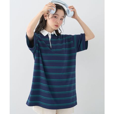 トレンドのメンズアイテムMIX風な着こなしが楽しめるラガーシャツ。ゆったりとしたルーズシルエットに長めのレングスでボトム合わせしやすいデザインです。肌触りの良いコットン素材の快適な着用感も魅力のポイント。バイカラーのボーダー柄が着映えを叶え、スタイリングにアクセントを効かせてくれます。透け感[ややあり]