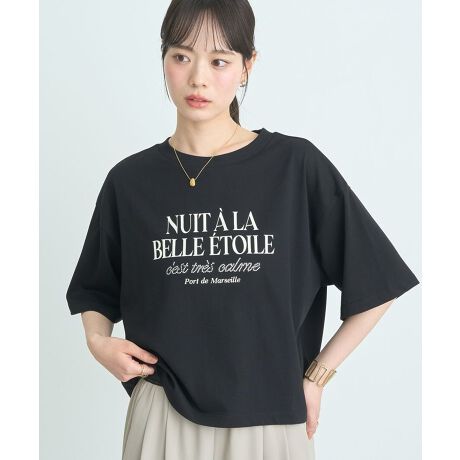 メッセージロゴ×メタルドットがおしゃれなプリントTシャツ。ワイドシルエットに短めのレングスがトレンド感のあるデザインです。クールイージー素材の爽やかな着心地も魅力のポイント。コーディネートの主役としてはもちろん、アクセント使いにも最適なおすすめの1枚です。