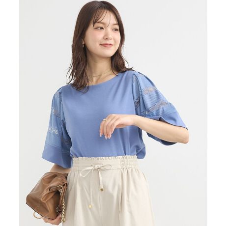 レース素材で切り替えたフレア袖が上品な印象のプルオーバー。シンプルなデザインながら、すとん落ちするクリーンな表面感がきれいに映える1枚です。サイドスリットヘムが抜け感ある着こなしを演出。カジュアルにもきれいめにも合わせやすく、幅広いシーンで活躍するおすすめのアイテムです。