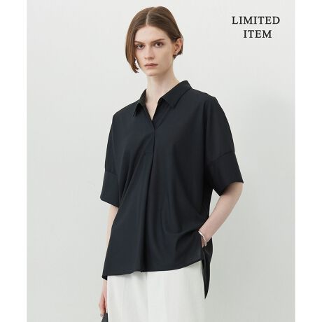 ■デザインサラッと涼やかな素材のドルマンスリーブ型スキッパーカットソーです。余裕のあるシルエットでこなれ感をプラスし、体型カバーも叶います。清涼感のある素材表情とイージーケア性を兼ね備えON/OFF活躍します。