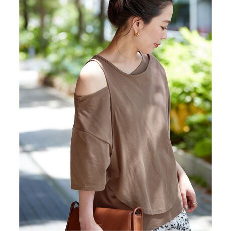 2枚のカットソーを重ねたようなデザインで普段のスタイリングに取り入れるだけでトレンド感のある着こなしになります。デニムやワイドパンツと合わせて肩を落としてずるっとルーズに合わせるのがおすすめです。